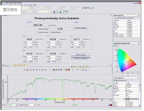 除了可計(jì)算總的PAR值,SpectraSuite-PAR允許用戶定義至多5個(gè)光譜段,每個(gè)光譜段可對(duì)應(yīng)植物的某個(gè)生長(zhǎng)期。例如定義計(jì)算400nm-480nm藍(lán)光光譜段的光合效能,與植物生長(zhǎng)初期相對(duì)應(yīng)。當(dāng)然,用戶可以計(jì)算每個(gè)光譜段的光合效能比例,紅/遠(yuǎn)紅外比例與植物生長(zhǎng)及結(jié)構(gòu)有關(guān)。