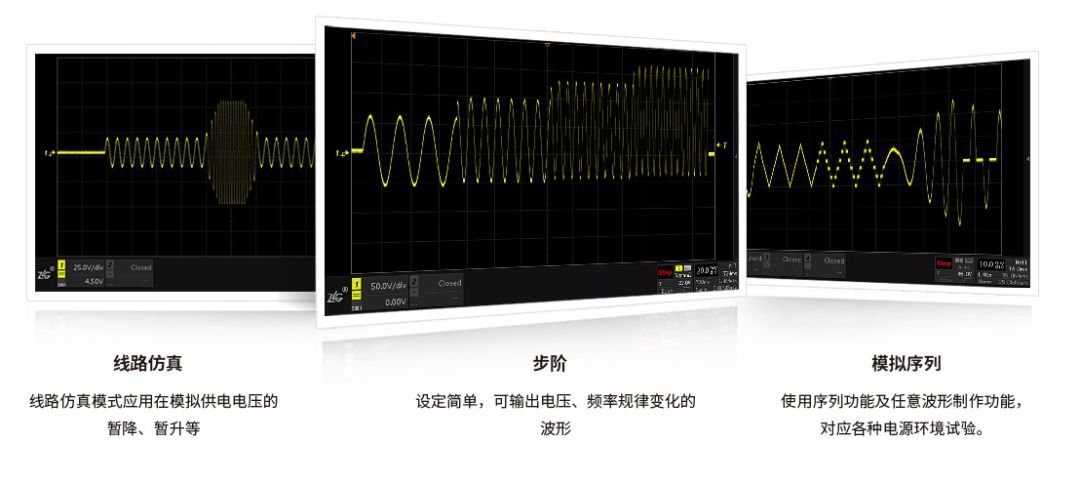 線路仿真的功能可模擬電壓突變(如跌落/突升等),其特點是輸出波形只有一部分突變。線性仿真的功能的典型技術(shù)應(yīng)用測試驗證電子產(chǎn)品對供電電網(wǎng)突變的抗擾能力。
