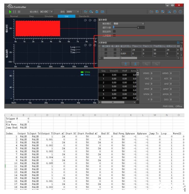 序列的功能(List)非常強大,可輕松模擬許多復(fù)雜的輸出波形,對輸出電壓、頻率、時間等設(shè)定組合,按順序調(diào)用實現(xiàn),就像堆俄羅斯方塊一樣,可讓多種類型的波形按照預(yù)先設(shè)置的序列輸出。PWR-Controller軟件支持excel表格編輯以及導(dǎo)入導(dǎo)出。序列的功能(List)典型技術(shù)應(yīng)用模擬特定輸出波形驗證電子產(chǎn)品性能和的功能。