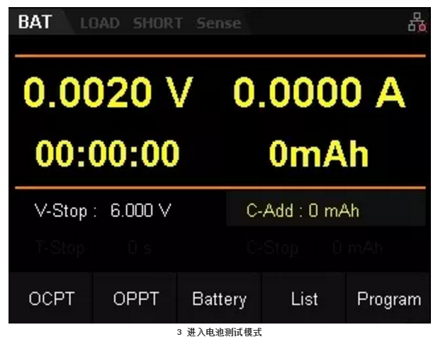A、進(jìn)入電池測試模式。按“Shift”+“CV”,并選擇“Battery”測試。圖3所示