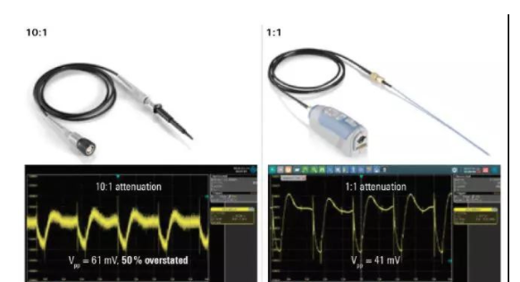 采用具有1:1衰減比的探棒可以顯著提高測量電源完整性的精確度;具有較高衰減比的探棒會放大噪聲,較高的衰減比則會限制可以采用的垂直靈敏度。比如在輸入低至1mV/div的示波器上采用衰減比為1:1的探棒就可以將靈敏度縮小至1mV/div,而采用衰減比為10:1的探棒只能設置至10mV/div。