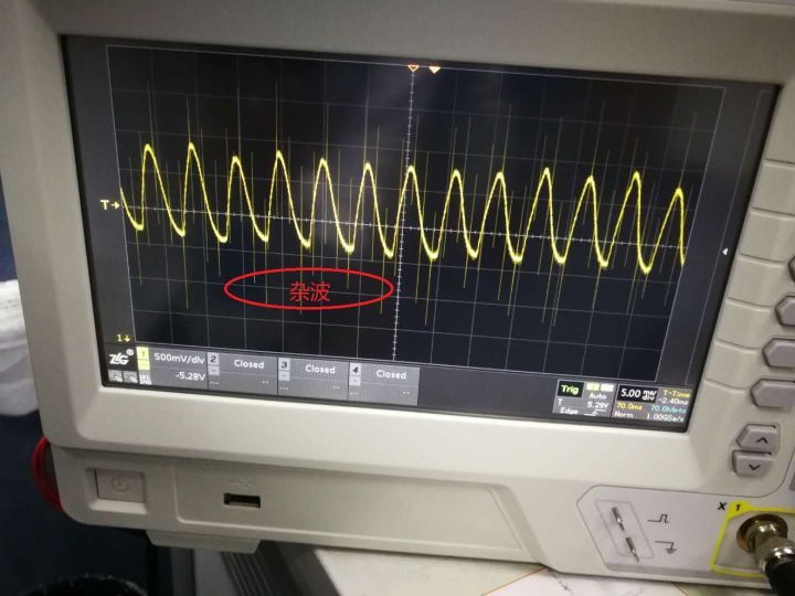 上圖就是馬達(dá)轉(zhuǎn)動時用數(shù)字示波器測出的原始波形,我們可以看到很多的的尖刺,就是很多雜波,通常電機(jī)都是會有很多這樣的干擾(無刷電機(jī)干擾小一些),我們在進(jìn)行模板測試前得把這些雜波給濾除掉,否則的話無法進(jìn)行模板測試。