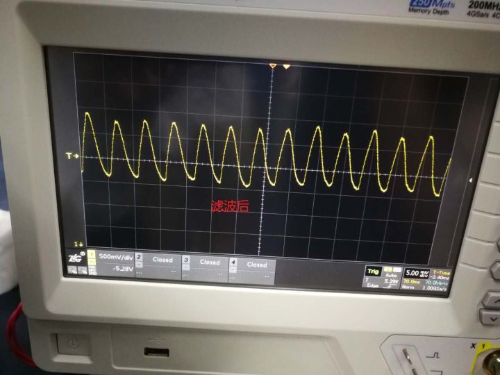 2、數(shù)字示波器開啟濾波功能后。效果如(圖2)所示: