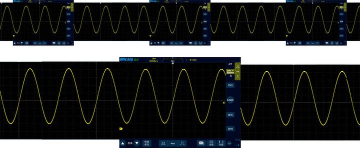 如果每次顯示的波形都不一樣,并且屏幕每次出現(xiàn)過的波形都不消失,那么我們看數(shù)字示波器的波形就會疊加變成這樣。可是如果每次顯示的波形都基本上一樣,即使屏幕每次出現(xiàn)過的波形都不消失,我們看數(shù)字示波器的波形依然是穩(wěn)定的正弦波。