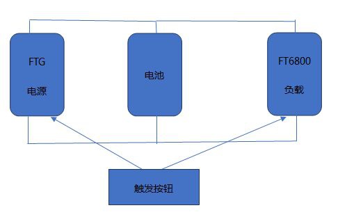 測(cè)試連接:電源和負(fù)載直接接入電池的正負(fù)極,使用一個(gè)觸發(fā)按鈕同步觸發(fā)。