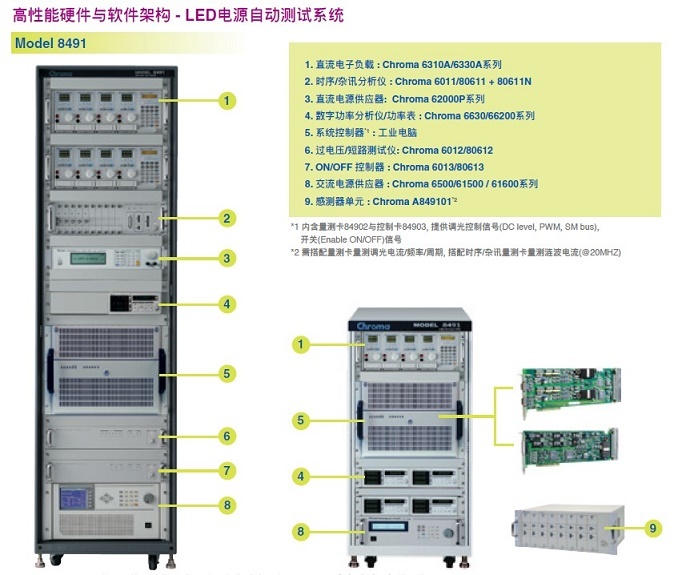 Chroma擁有強(qiáng)大的系統(tǒng)整合能力,推出了LED驅(qū)動(dòng)電源測(cè)試系統(tǒng)Chroma 8491,該系統(tǒng)不僅適用于研發(fā)或品管部門(mén)對(duì)LED驅(qū)動(dòng)電源的詳細(xì)驗(yàn)證,也完全能夠滿足生產(chǎn)線所要求的一次測(cè)試多顆產(chǎn)品的大量生產(chǎn)要求。