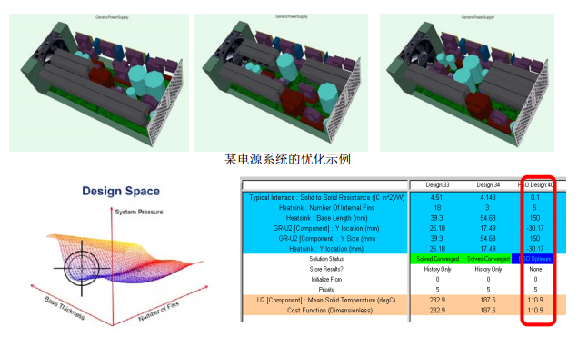 ? Command Center—優(yōu)化設計模塊:進行目標驅(qū)動的自動優(yōu)化設計,可以進行溫度場、流場、重量及結(jié)構(gòu)尺寸等方面的自動優(yōu)化設計;包含DOE(實驗設計法),SO(自動循序優(yōu)化),RSO(響應面法優(yōu)化)等先進優(yōu)化方法;