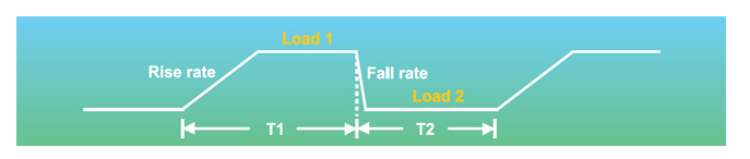在快速的時(shí)代里,電子元件皆朝高速運(yùn)作的方向設(shè)計(jì),因此,電源元件對(duì)于暫態(tài)的信號(hào)及動(dòng)態(tài)響應(yīng)的性能要求,比過去都高出許多。為滿足這些 測(cè)試應(yīng)用與要求,63200系列提供高速、可編程動(dòng)態(tài)負(fù)載模擬與同步動(dòng)態(tài)負(fù)載等功能。下圖所示為可編程的參數(shù):設(shè)定電流高/低準(zhǔn)位、T1/T2、爬 升率/下降率。可編程的電流爬升率/下降率可用來模擬真實(shí)負(fù)載情況的暫態(tài)負(fù)載變化模擬。63200系列中,在負(fù)載電流連續(xù)變化時(shí),內(nèi)部的監(jiān)測(cè)機(jī) 制與線路能使得電流波形失真度達(dá)到小化,電流爬升率快可達(dá)25A/μs (63208)、動(dòng)態(tài)變化可高達(dá)20kHz。