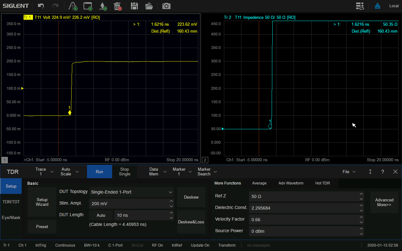 SNA5000X系列支持TDR時域反射計測量功能,可在時域?qū)鬏斁€的特征阻抗,時延等參數(shù)進(jìn)行分析。