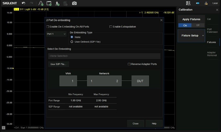 在微波射頻領(lǐng)域,如何有效消除有害的測試夾具效應(yīng)是一大挑戰(zhàn)。比如在對SMD器件進(jìn)行測試時需要特定的測試夾具實現(xiàn)測試儀器測試端與器件輸入端的轉(zhuǎn)接,導(dǎo)致測試結(jié)果中包含了測試夾具的特性。目前SNA5000X系列提供的去除測試夾具影響的方法主要有:端口延伸,端口匹配,端口阻抗轉(zhuǎn)換,去嵌入,適配器移除等。