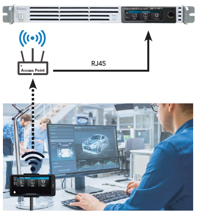 62000E系列直流電源內(nèi)置VNC服務器,使用者可非常簡易快速地透過瀏覽器直接操作遠端儀器,也可透過電腦或手機上的VNC Viewer軟件操作遠端儀器及監(jiān)視,同時具有密碼做使用者功能權限管理。