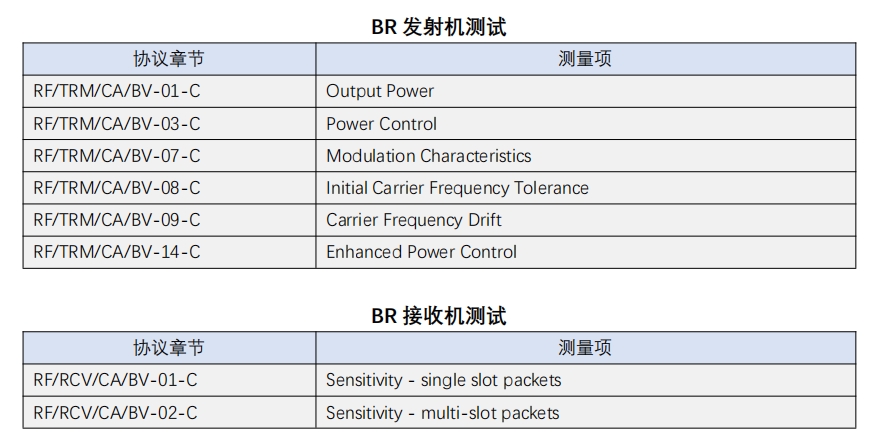 ITC-RT650 提供 BR 射頻測試功能,支持如下測量項。