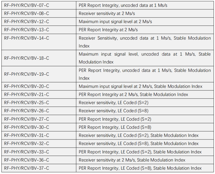 ITC-RT650 提供 LE 射頻測試功能,支持如下測量項。